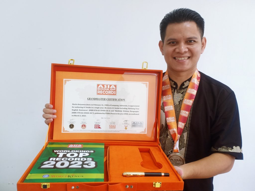 Di tahun 2022, Harits turut mempopulerkan bahasa Indonesia dan bahasa Daerah di kancah internasional dengan menulis buku dalam 4 bahasa, yakni bahasa Indonesia, Lampung, Jawa, dan Sunda. Seluruh buku tersebut ditulis dengan menggunakan bahasa Inggris sebagai bahasa pengantar agar dapat dipahami dengan mudah oleh penutur bahasa asing. Kegemarannya dalam menulis juga membuat Harits berhasil meraih penghargaan dari Lembaga Prestasi Indonesia – Dunia (LEPRID) di tahun 2021 dan predikat Akademisi Berkarya pada ajang Adi Acarya Award di tahun 2020.
